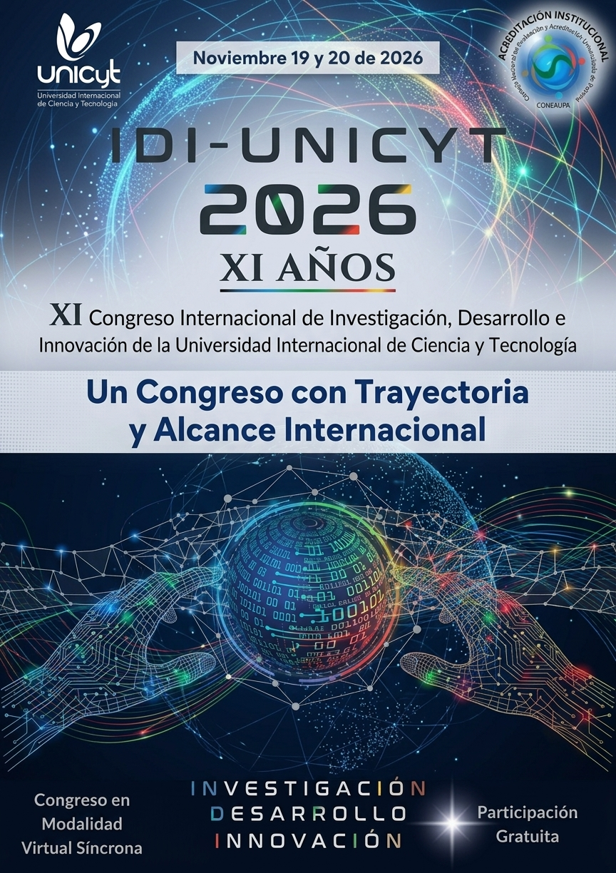 La Universidad Internacional de Ciencia y Tecnología (UNICyT) se complace en invitarles a la undécima edición de su evento científico insignia. Tras una década de éxito continuo, el Congreso IDI-UNICyT 2026 se reafirma como el espacio predilecto para el intercambio de conocimientos sin fronteras, conectando a la comunidad científica global en un entorno virtual de alto nivel.
